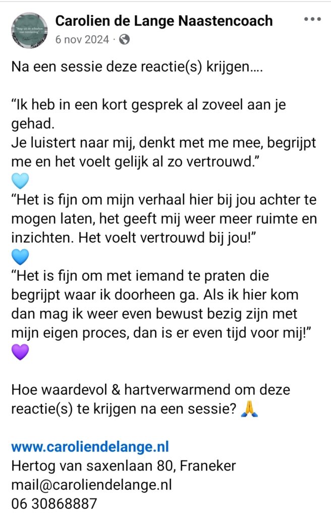 “Ik geef jou als naasten heldere en toegankelijke informatie over verslaving en begeleid je bij het (her)ontdekken van je eigen kracht, zodat je met vertrouwen keuzes kan maken voor jezelf én in relatie tot je geliefde.”